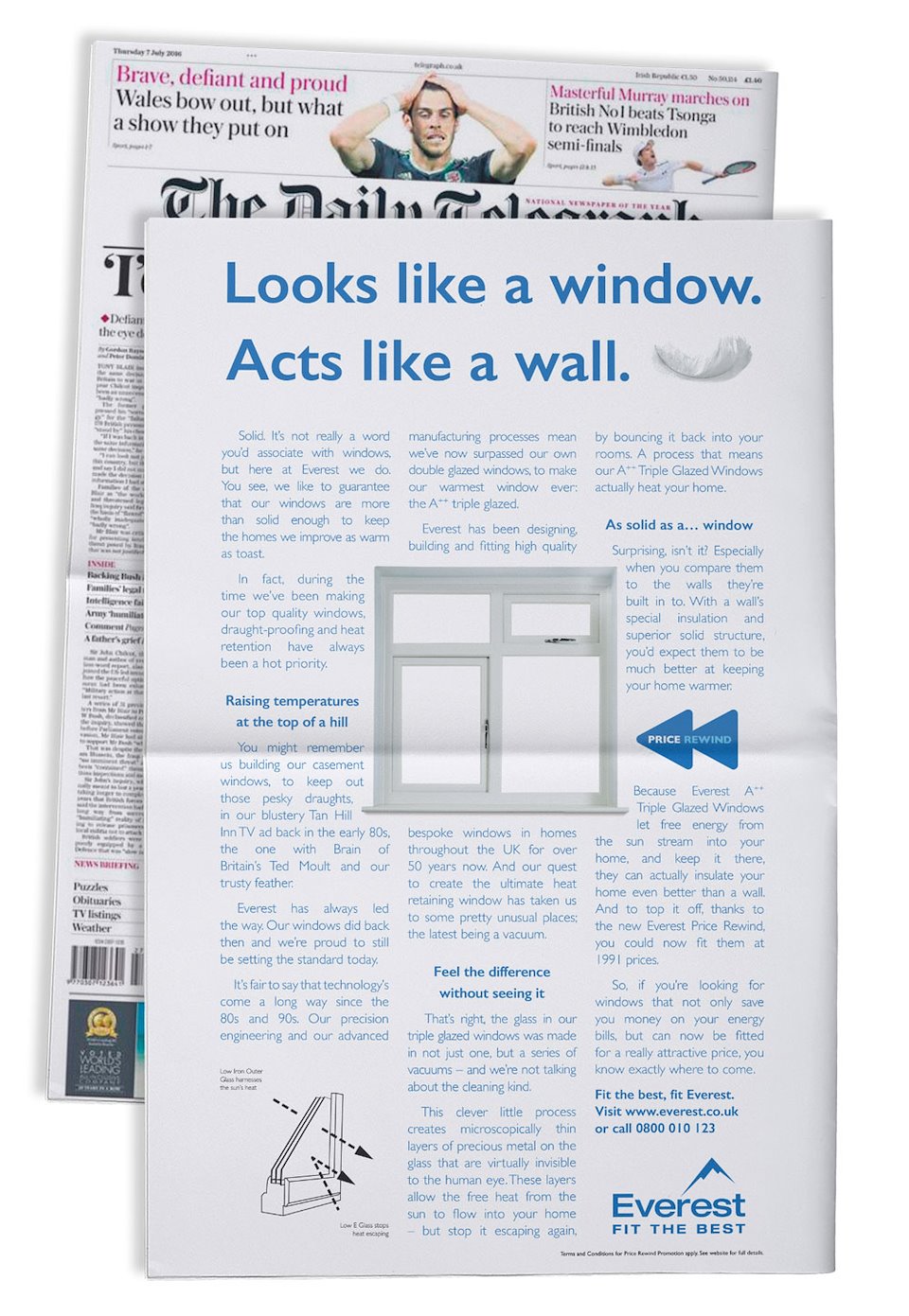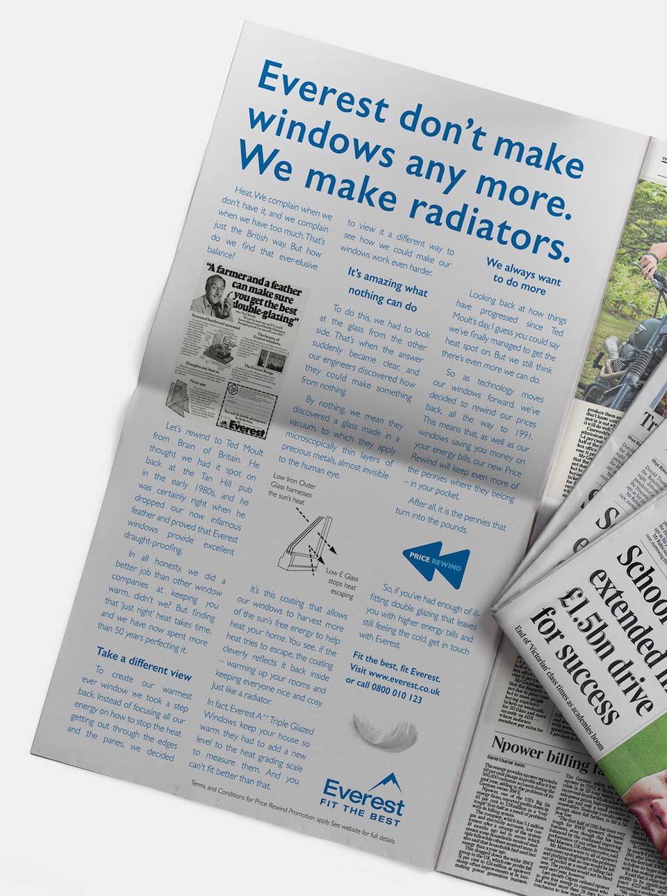 Saying you’re the best is very different to proving it. That’s why Everest go further to ensure every one of their windows and doors not only meets, but also beats, the highest standards. While competitors often overlook the all-important details, I was tasked with creating a series of long copy ads that brought them to the fore. Highlighting the true benefits of fitting the best in an engaging and insightful way.