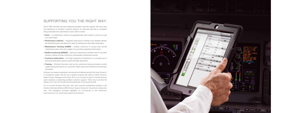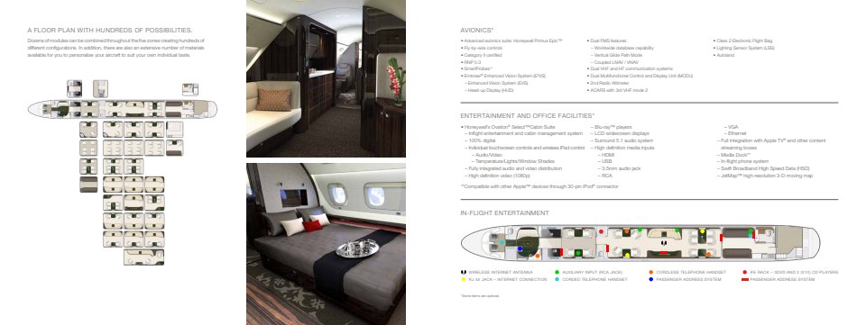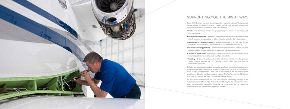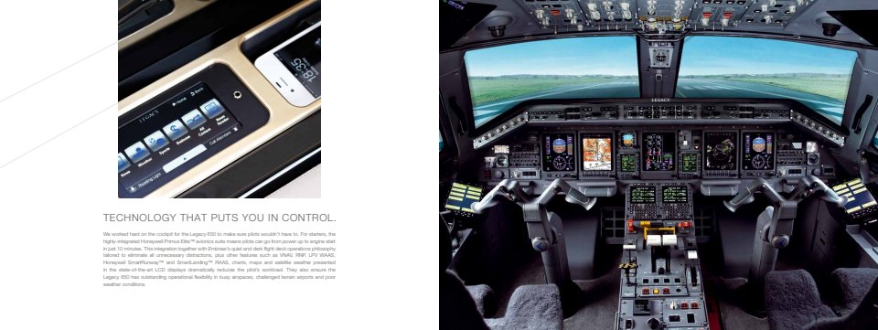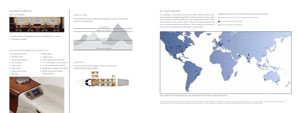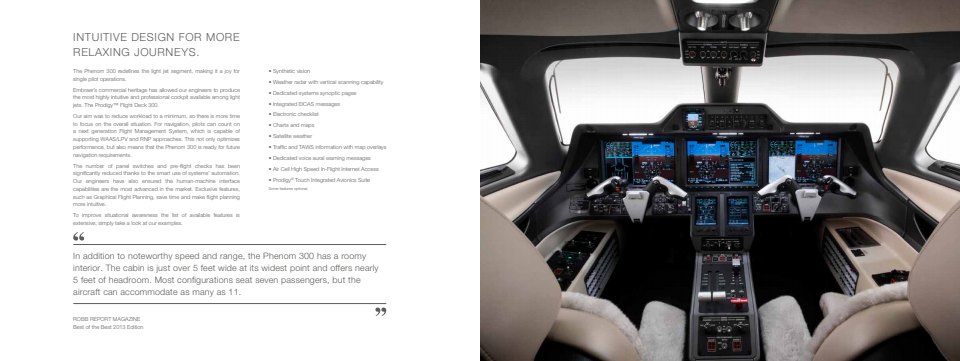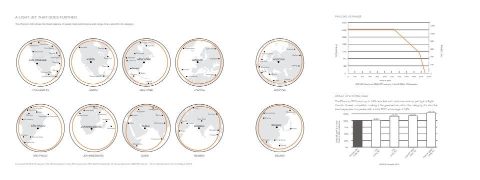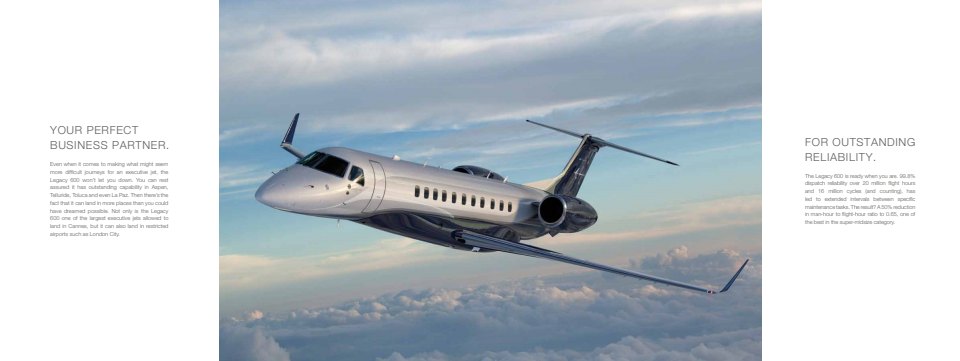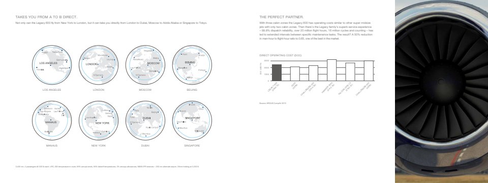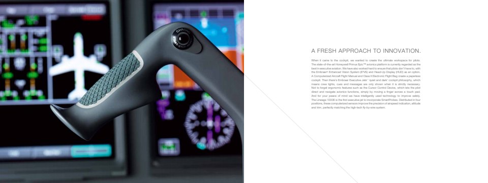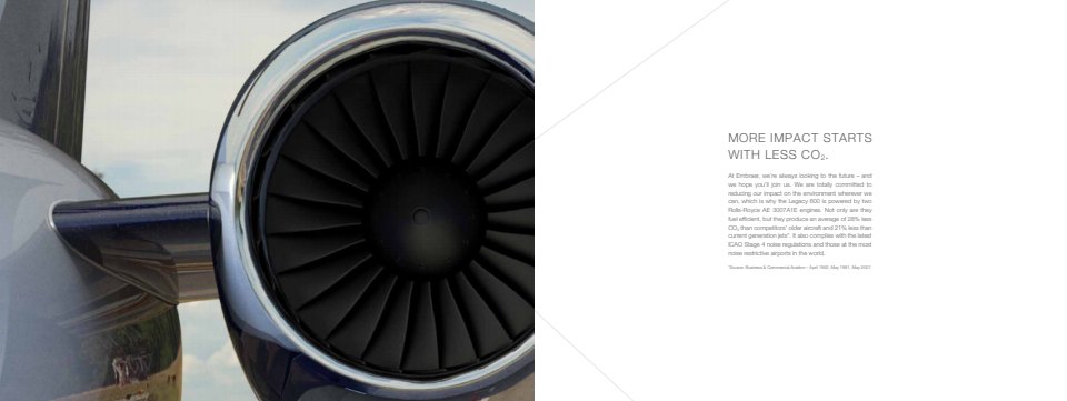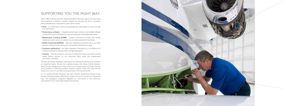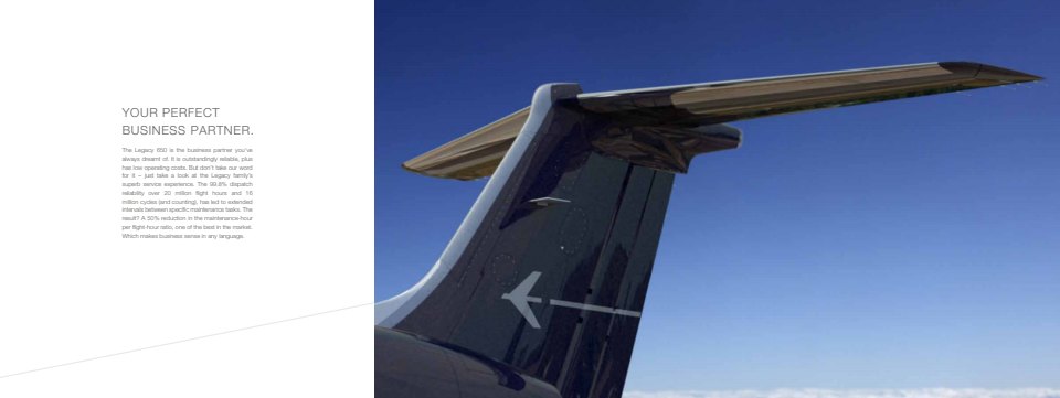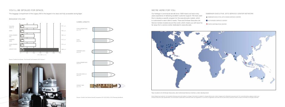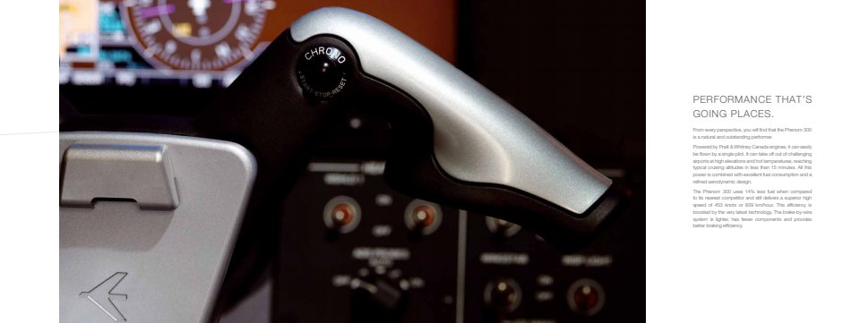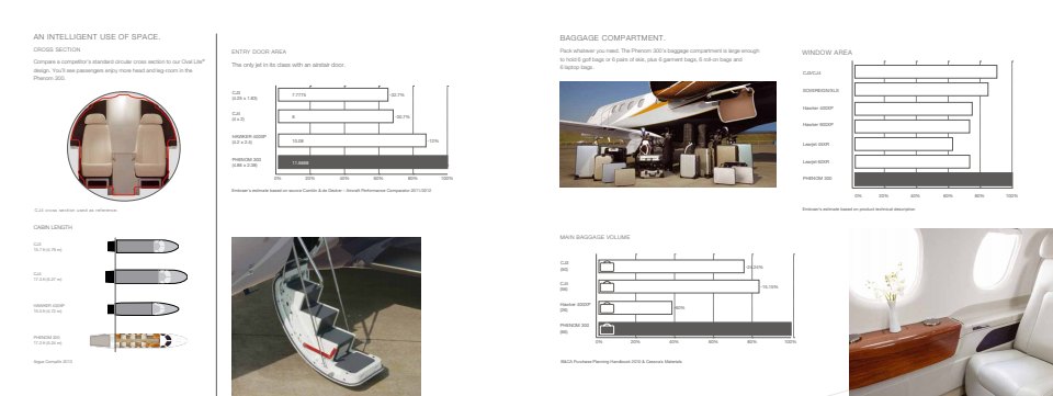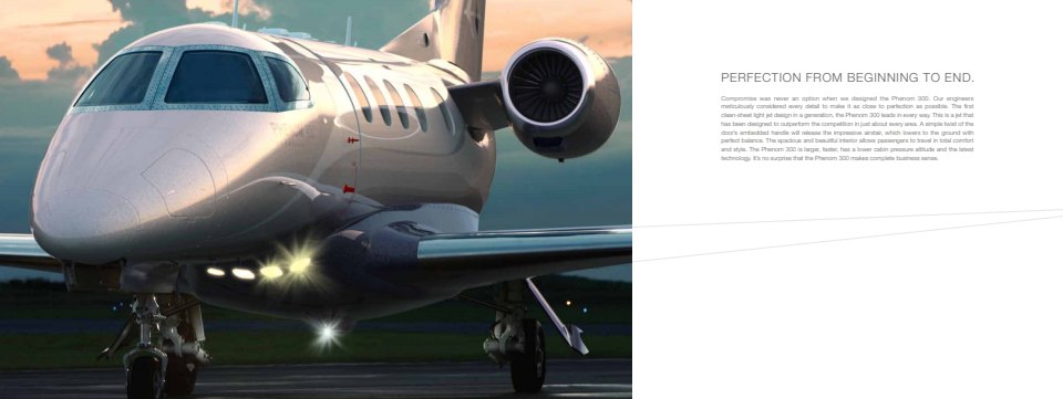 We wanted to show how Embraer Executive Jets take luxury flying to the next level. This series of high-end prospect brochures do just that. Gone are the days of longwinded prose for Embraer. Instead; short, sharp, intelligent descriptions with images showing the true elegance and technical expertise that these jets have to offer.