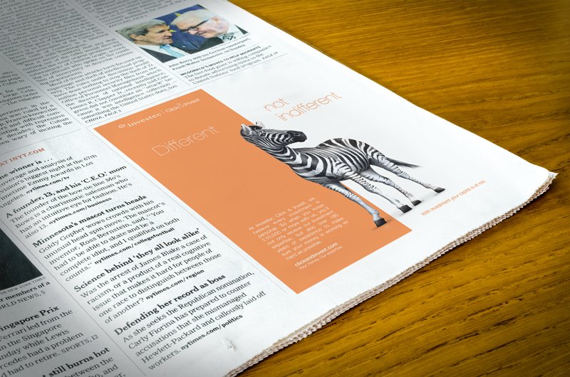 Whilst differentiating from the established Investec brand, the new style and tone of voice maintained a confident, knowledgable and approachable feel. Retaining the iconic Investec zebra, the headlines and copy intelligently spelt out the differences of how C&I put the customer’s investment goals first, without being elitist or arrogant.