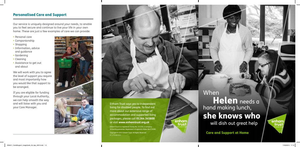 Many people with mental or physical disability would never dream of independent living. But Enham Trust is a charity helping to turn it into reality for a whole community. Providing accommodation, work and social environments to some of society’s most vulnerable individuals. We were tasked with rebranding Enham to give it a fresh, empathetic tone of voice and visual identity, showing those in need that help is where they require it most – at home.